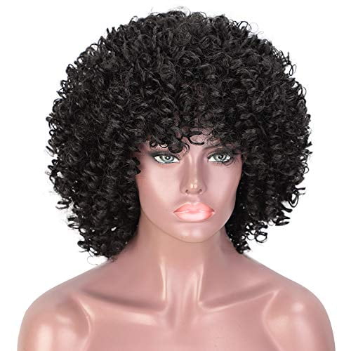 Aisi Queens Black Short Kinky Curly Wig Synthetic Afro Full Wigs With Bangs For Black Women Heat Resistant Hair For African Women Walmart Canada